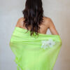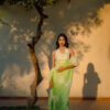 Be a head-turner in this fresh lime green saree with contemporary applique blouse work and white floral cutouts. The chic modern design makes it the perfect choice for those who love fashion-forward, high-fashion silhouettes and effortless sophistication.